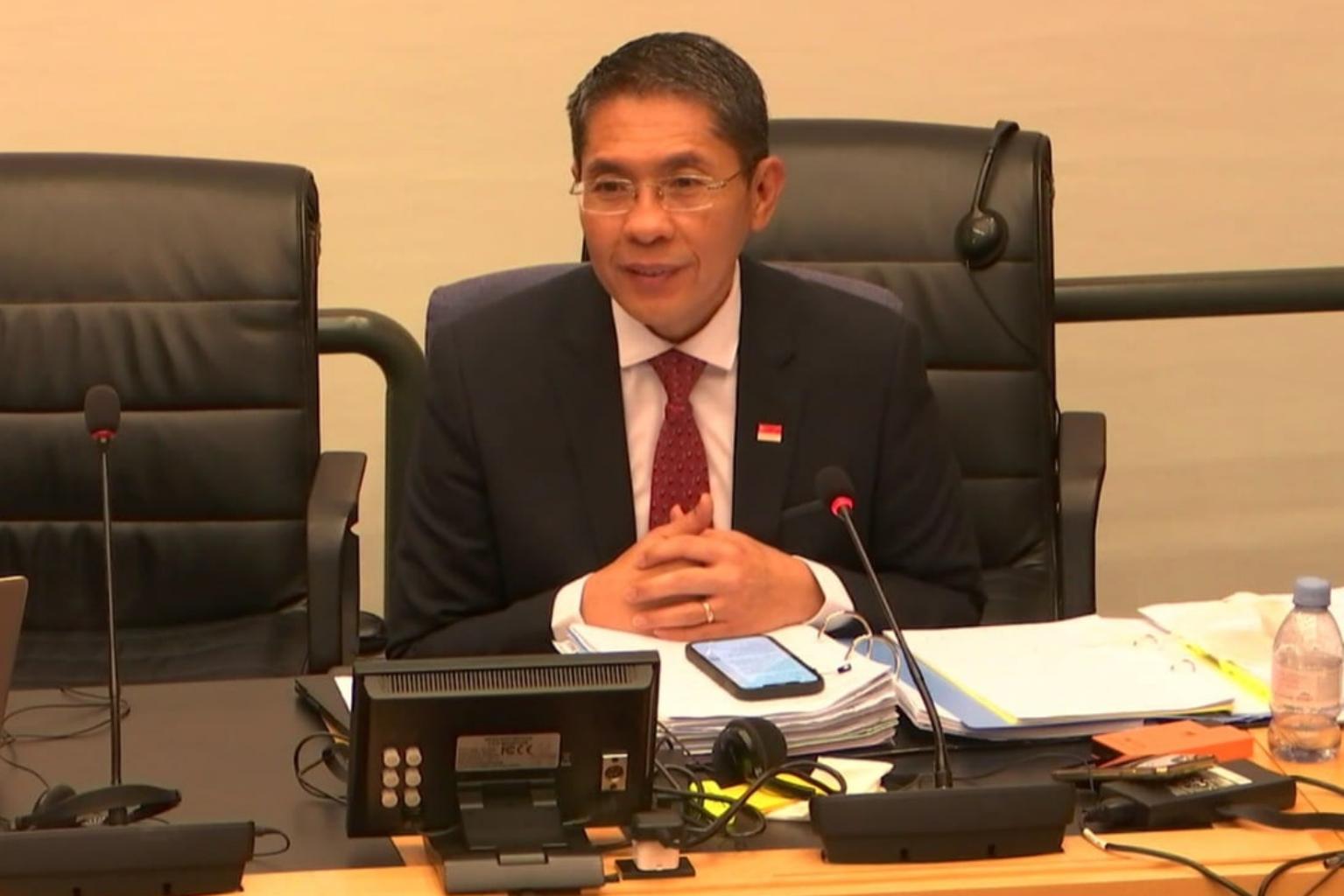 Minister in the Prime Minister's Office Maliki Osman spoke before the UN committee on Nov 19, 2021.