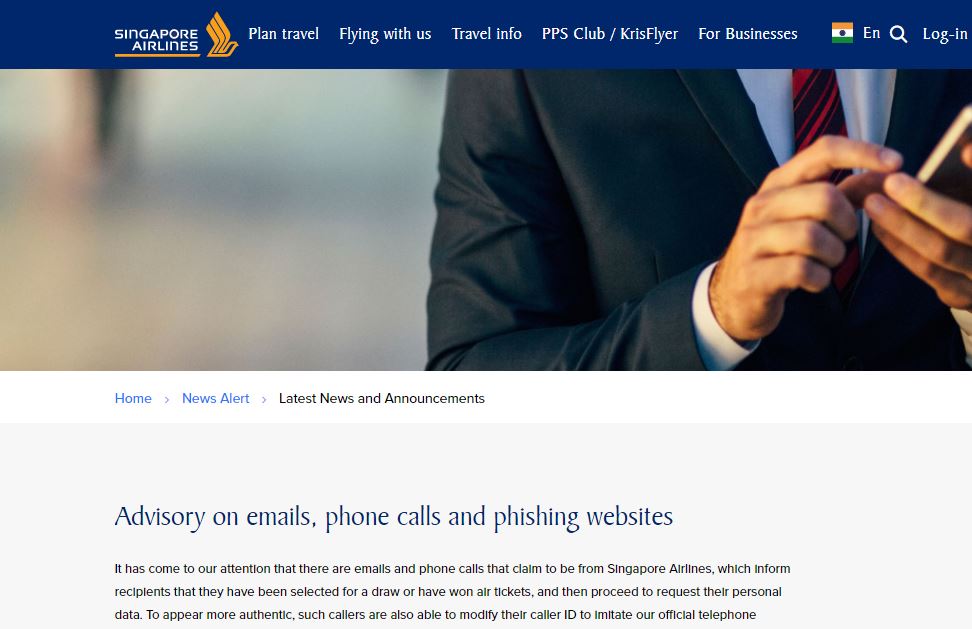 SIA posted an advisory on its website and on its social media platforms on Friday, warning customers about the scam.