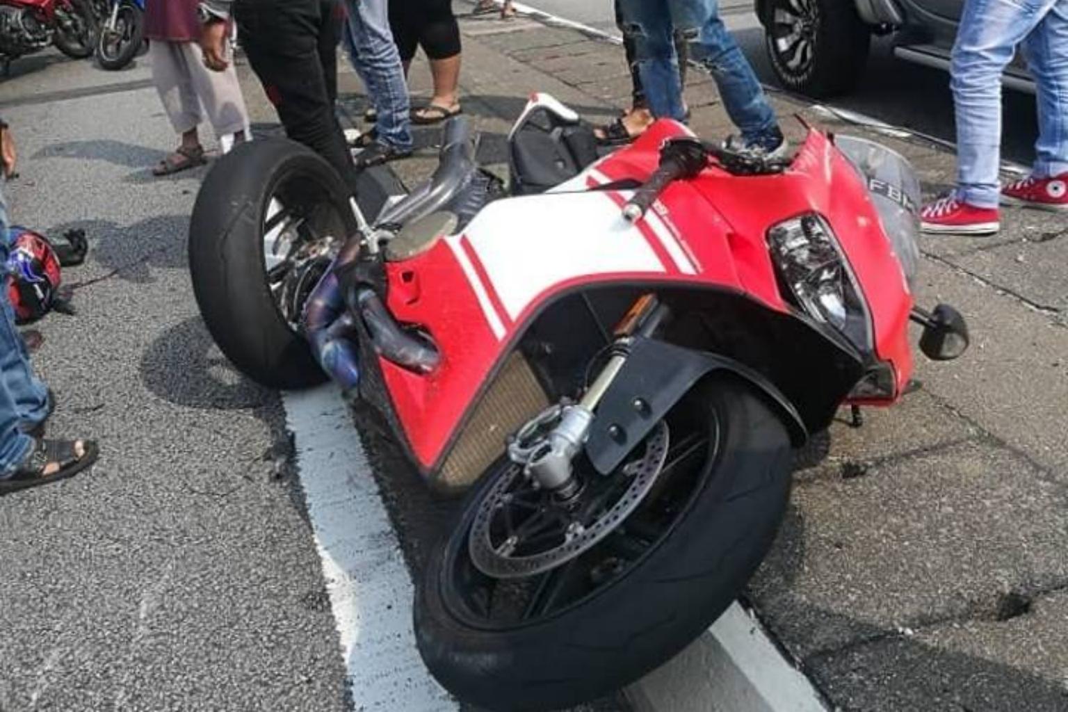 Photos circulating on Facebook show a red-and-white motorbike with a Singapore-registered motorcycle number plate leaning on a road shoulder. Netizen Ha Nyut, who shared the post, said the accident happened in Kuala Lumpur and that the rider died on the spot.
