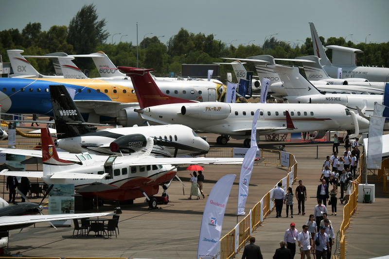 A photo taken on Feb 8, 2018, shows private jets on display at the Singapore Airshow.