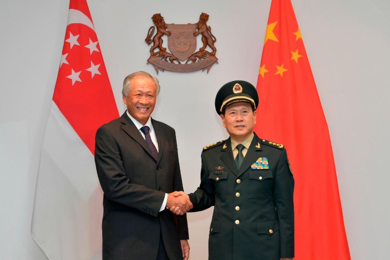 Defence Minister Ng Eng Hen (left) met China’s Defence Minister Wei Fenghe on May 29, during which they agreed to revise a defence pact which could include larger-scale military exercises and frequent high-level dialogues, as part of efforts to deepen defence ties and cooperation.
