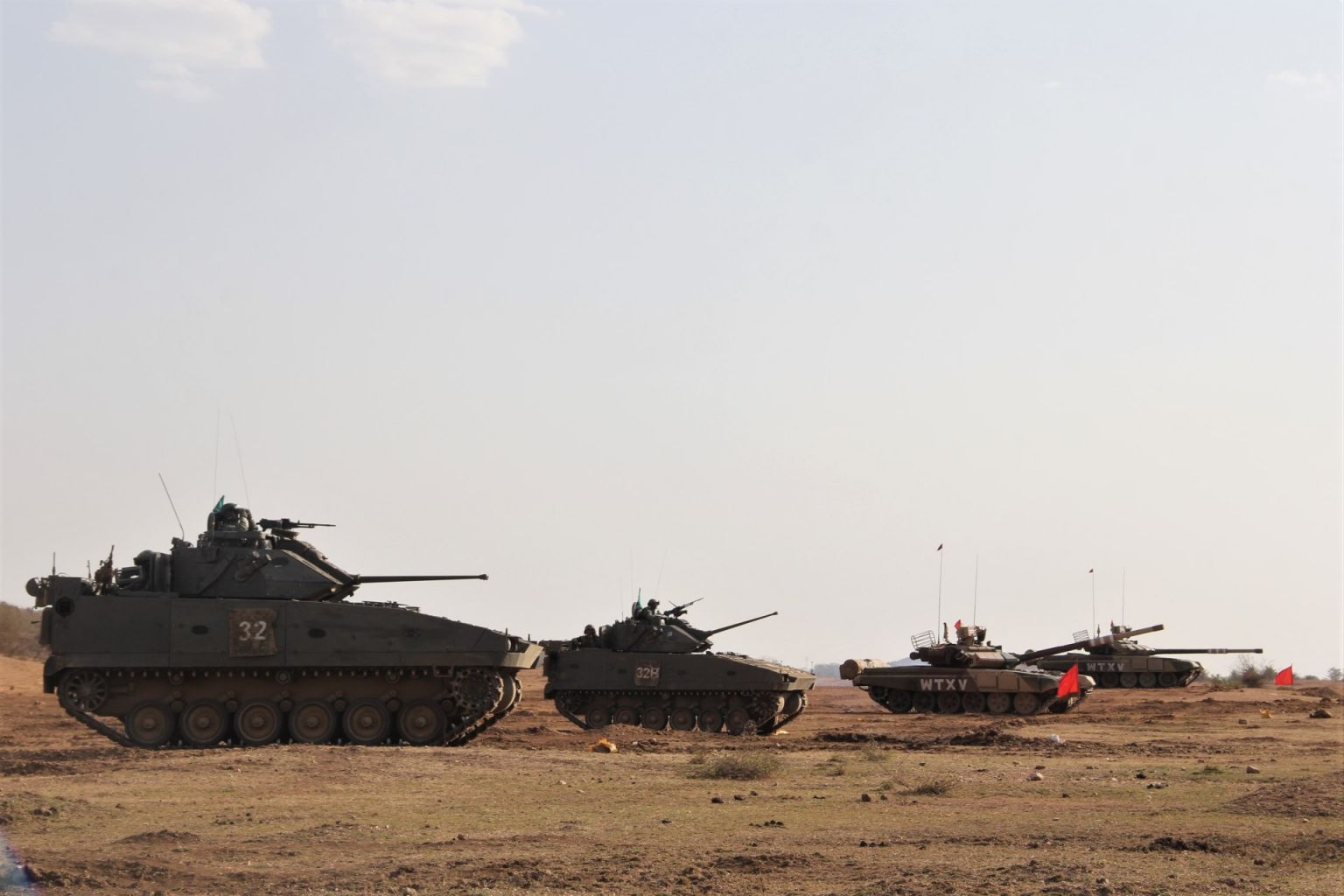 The Singapore Army's infantry fighting vehicles and Indian Army's main battle tanks during the integrated live firing at Exercise Bold Kurukshetra.