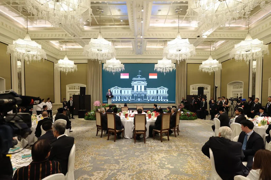 President Tharman Shanmugaratnam giving a speech during the state banquet held for visiting Indonesian President Prabowo Subianto on June 16.