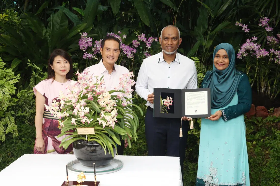 Dr Muizzu and Mrs Sajidha also visited the National Orchid Garden in the Singapore Botanic Gardens, where a new orchid hybrid was named in their honour.