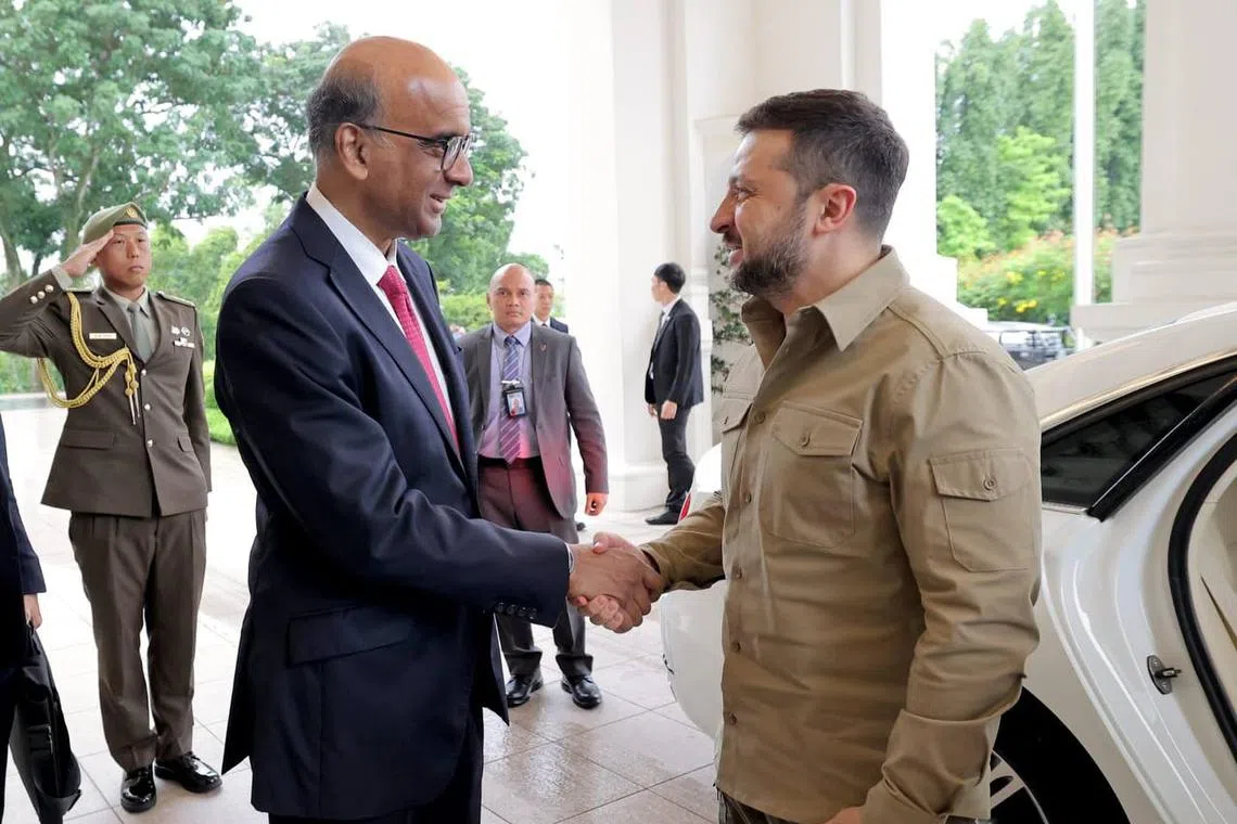 Ukrainian President Volodymyr Zelensky with President Tharman Shanmugaratnam. The two leaders reaffirmed the warm and friendly ties between Singapore and Ukraine.