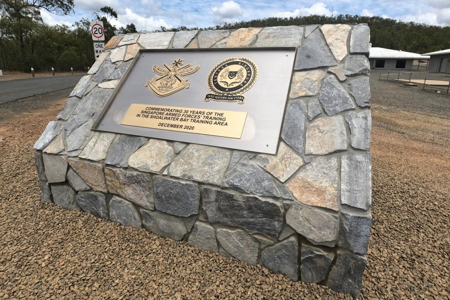 A commemorative plaque installed at Camp Growl to commemorate the 30th anniversary of the SAF’s training in the Shoalwater Bay Training Area.