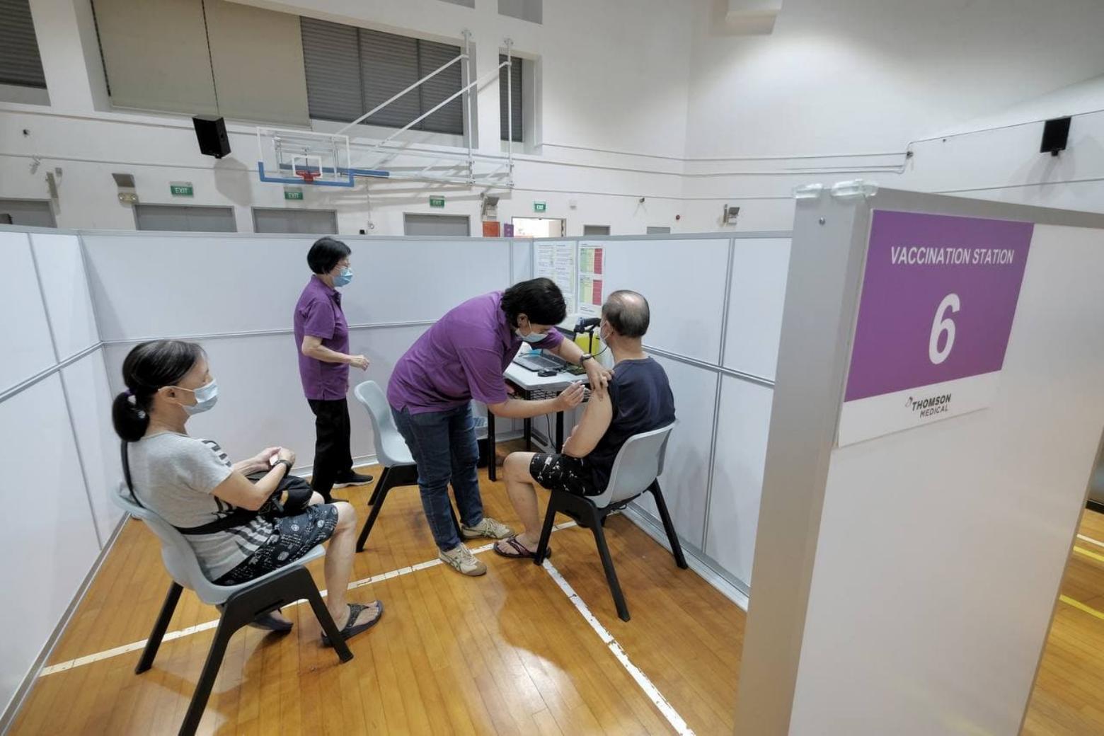 The vaccination centre in Senja-Cashew Community Club's sports hall is operated by Thomson Medical, which runs another centre in Bishan Community Club.