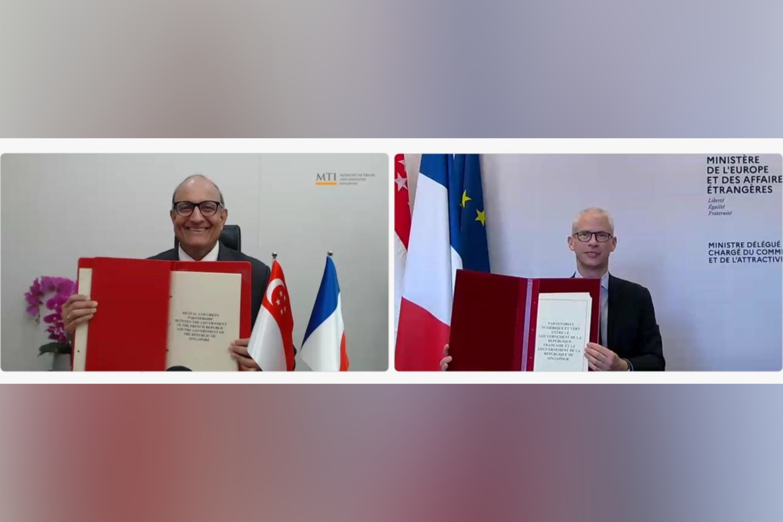 The partnership was signed at a virtual ceremony by Minister-in-charge of Trade Relations S. Iswaran and French Trade Minister Franck Riester.