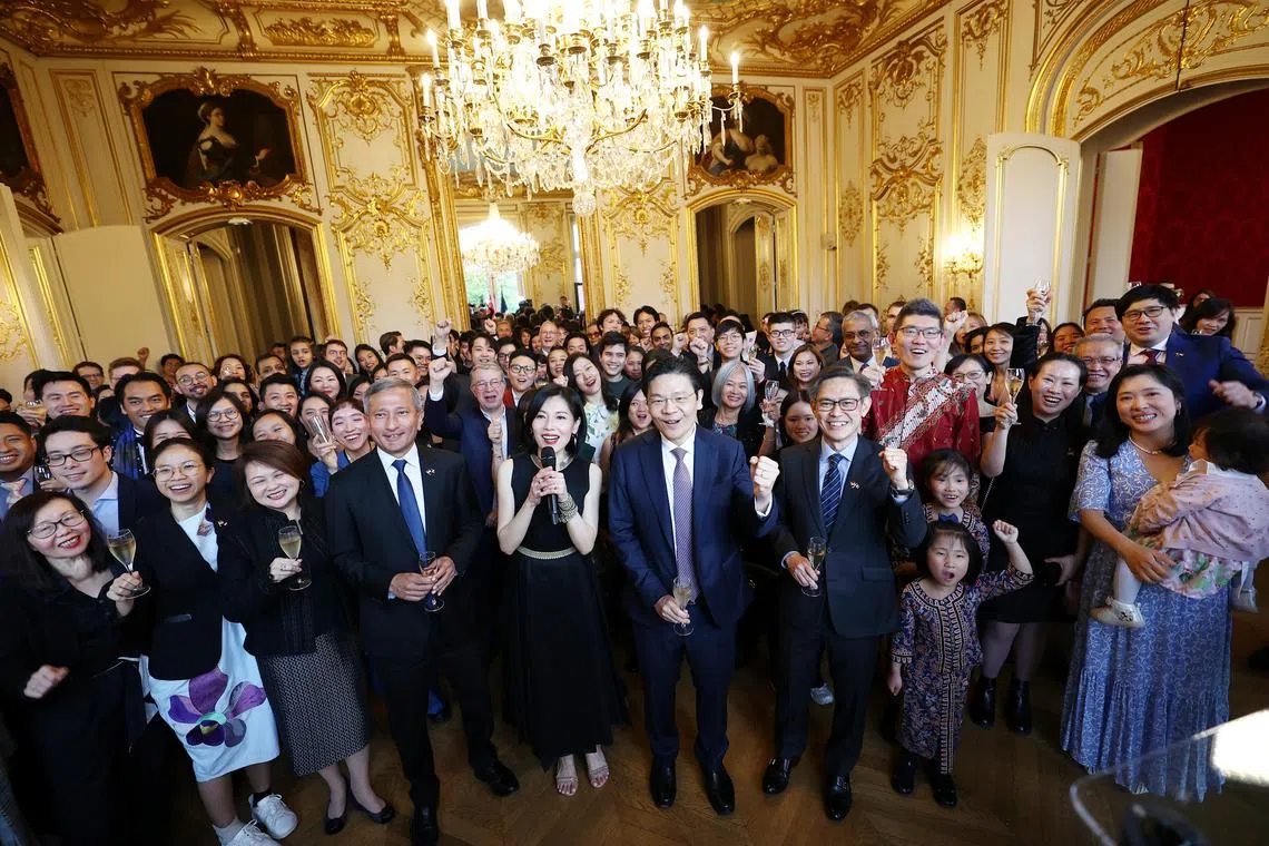 DPM Lawrence Wong at a reception with overseas Singaporeans at Hotel Le Marois in Paris on April 11.
