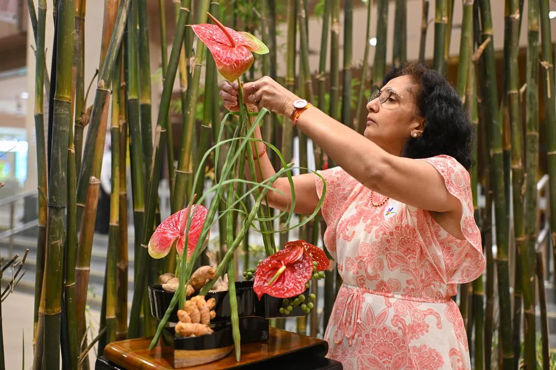 One of the 24 floral artists is Ms Anju Bhardwaj. The 56-year-old told The Straits Times: “For the public, it will be fascinating to see how edibles have been used in the flower arrangements, and it is going to inspire them to make it a part of their home in their everyday lives.”