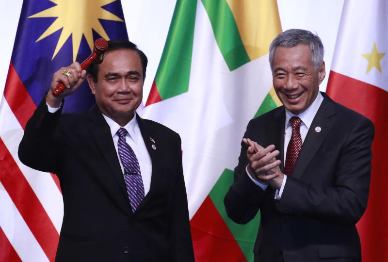 After the handover on Thursday (Nov 15), Thai Prime Minister Prayut Chan-o-cha thanked and congratulated his Singapore counterpart Lee Hsien Loong on "efficiently driving forward a resilient and innovative Asean community" and promised that Thailand will continue the good work.