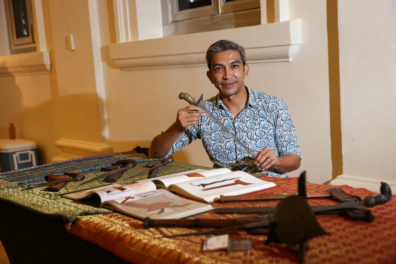 Jamal Mohamad showing his personal collection of kris.