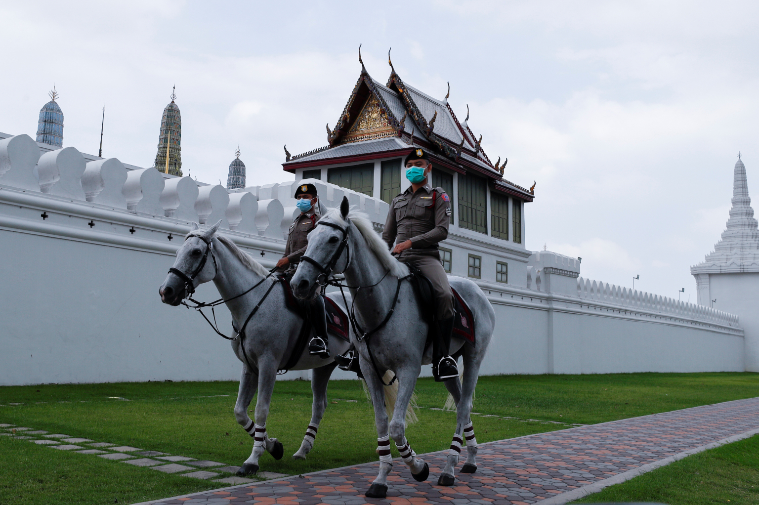 Thai police on patrol outside the Grand Palace in Bangkok in April.