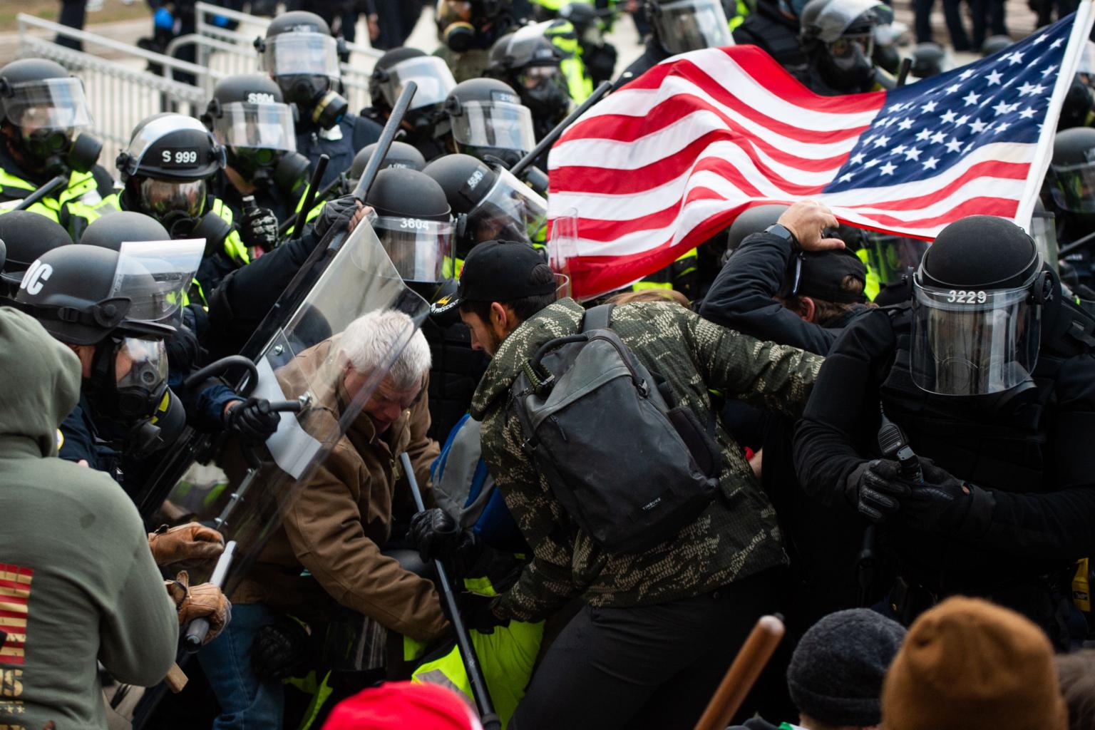 Supporters of US President Donald Trump clashing with riot police outside the Capitol building in Washington on Jan 6, 2021.