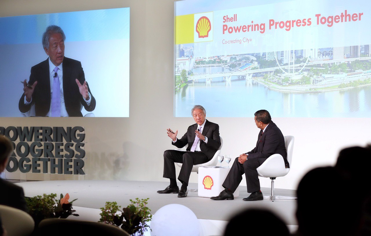 Senior Minister Teo Chee Hean (left) drew attention in particular to the Republic's efforts in going low-carbon and managing rising sea levels in a speech at the sixth Asian edition of the Shell Powering Progress Together forum.