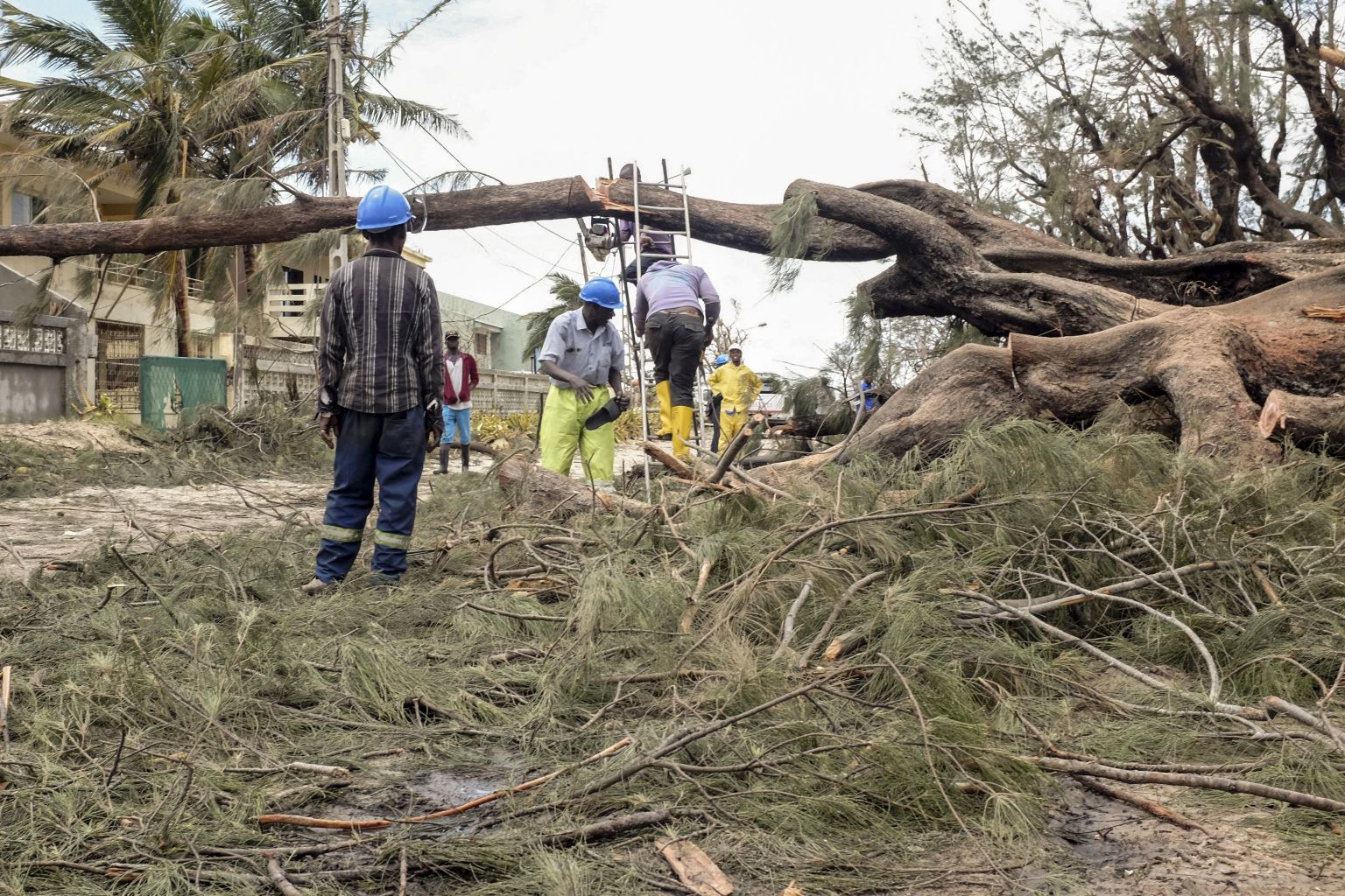Public workers cut a fallen tree after Cyclone Idai hit in Beira City, Mozambique, on March 20, 2019.