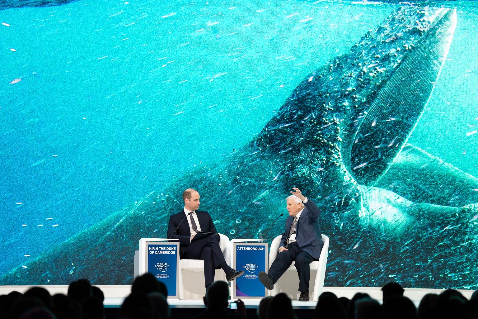 Prince William (left) interviewing Sir David Attenborough, a broadcaster and naturalist, on climate change on Tuesday at the World Economic Forum.
