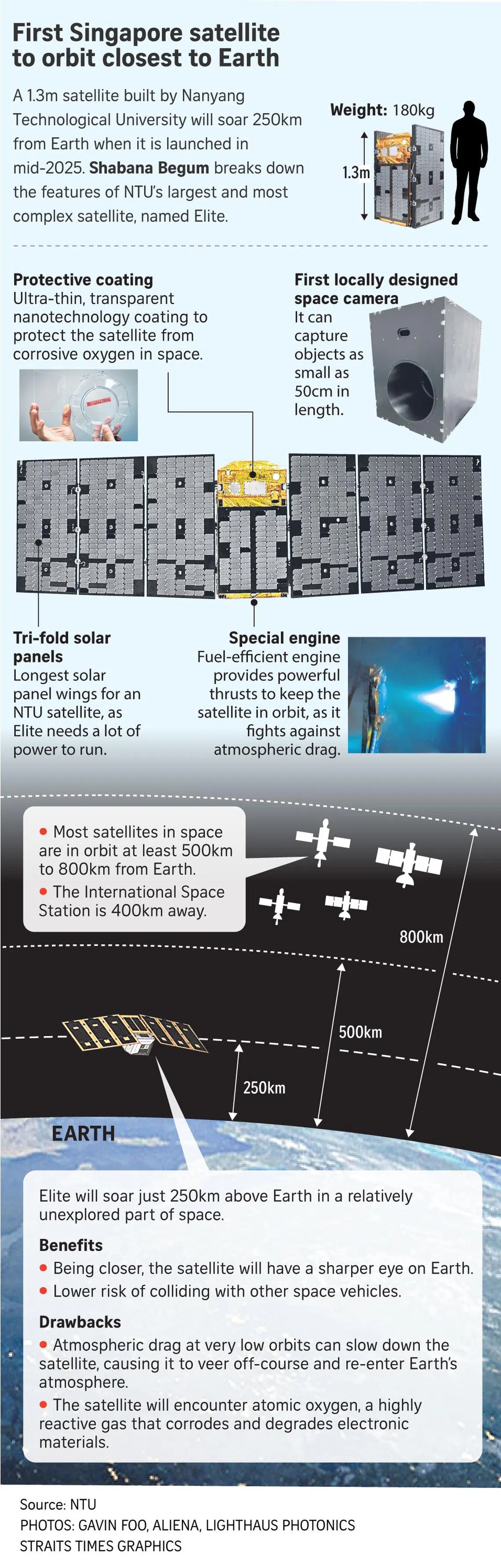 To prevent this, Elite will have a novel and fuel-efficient engine built by Aliena, an NTU deep-tech spin-off, to help the satellite fight the friction.