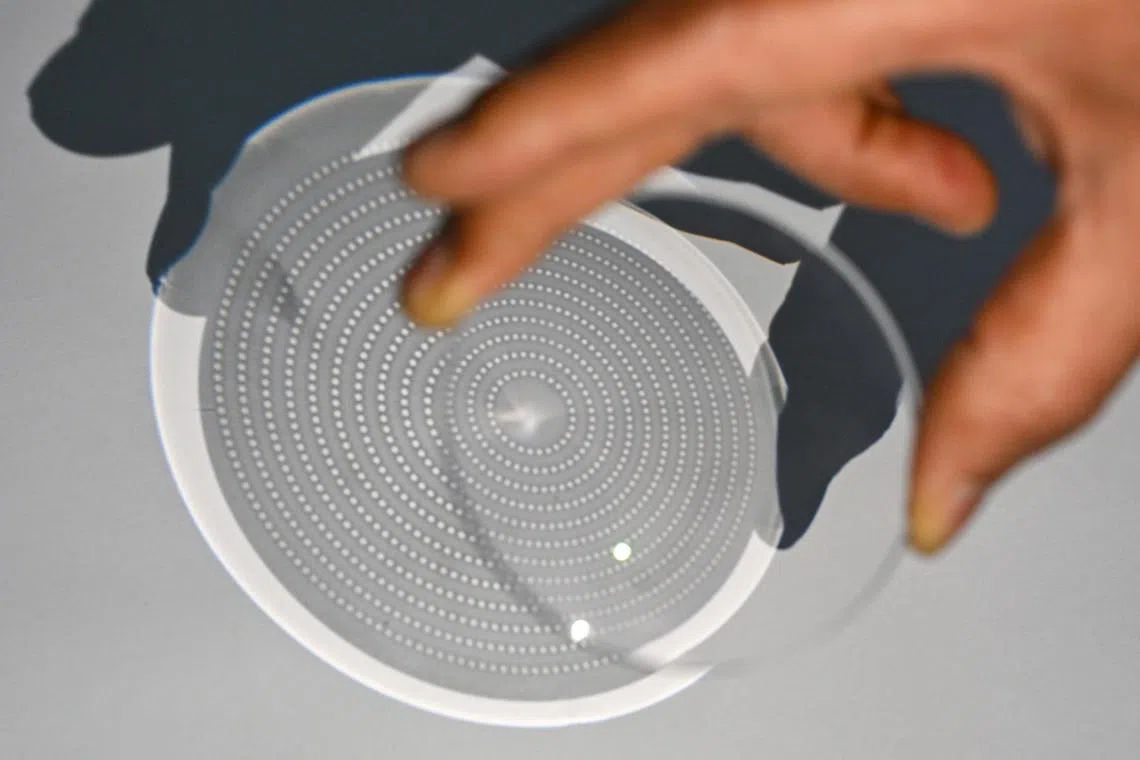 Mr Bastien Feret, who heads EssilorLuxottica’s R&D Centre for Innovation & Technologies, holding a Stellest lens, which is able to slow down myopia progression in children.