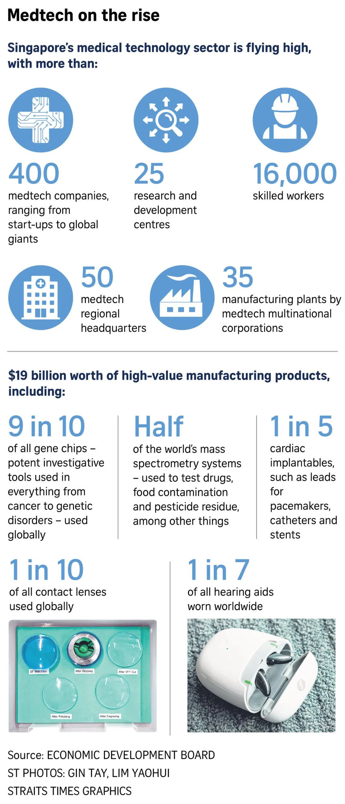 SINGAPORE – One in 10 contact lenses used globally comes from Singapore, as does one in five cardiac-related implants such as surgical structural heart valves, pacemakers and stents.