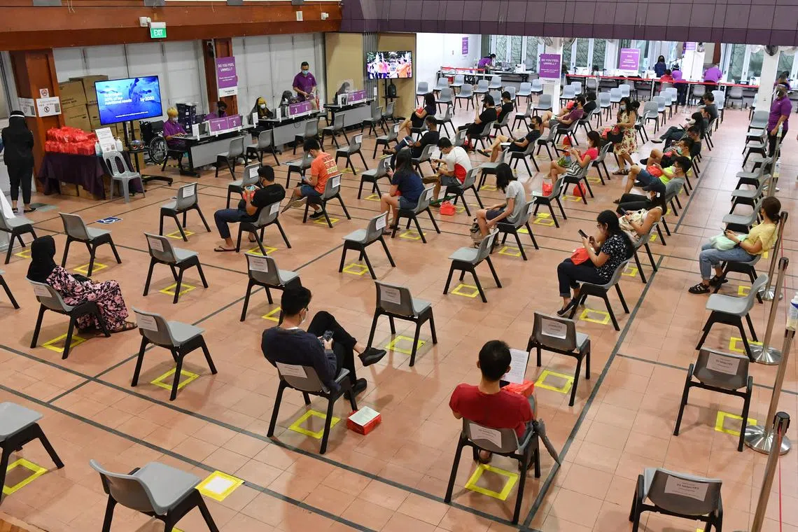The Covid-19 vaccination centre at Potong Pasir Community Club on June 26, 2021. The Government needed to draw over $40 billion from the reserves for the Covid-19 crisis.