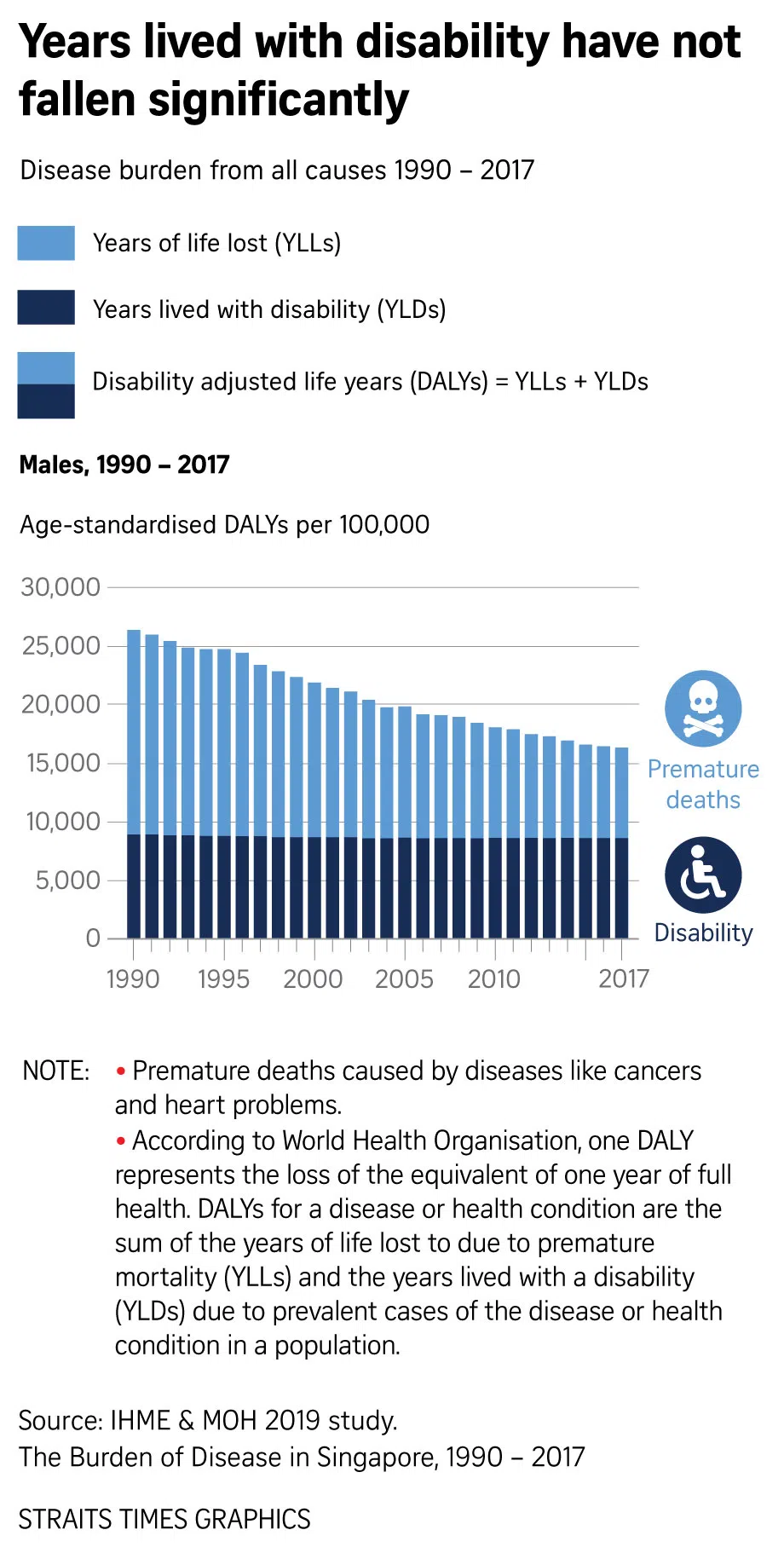 SINGAPORE - Through three decades of planning and investments in healthcare, a 76-year-old Singaporean has a similar age-related burden of disease today as the average 65-year-old in the world. Only the Japanese have a better outcome.