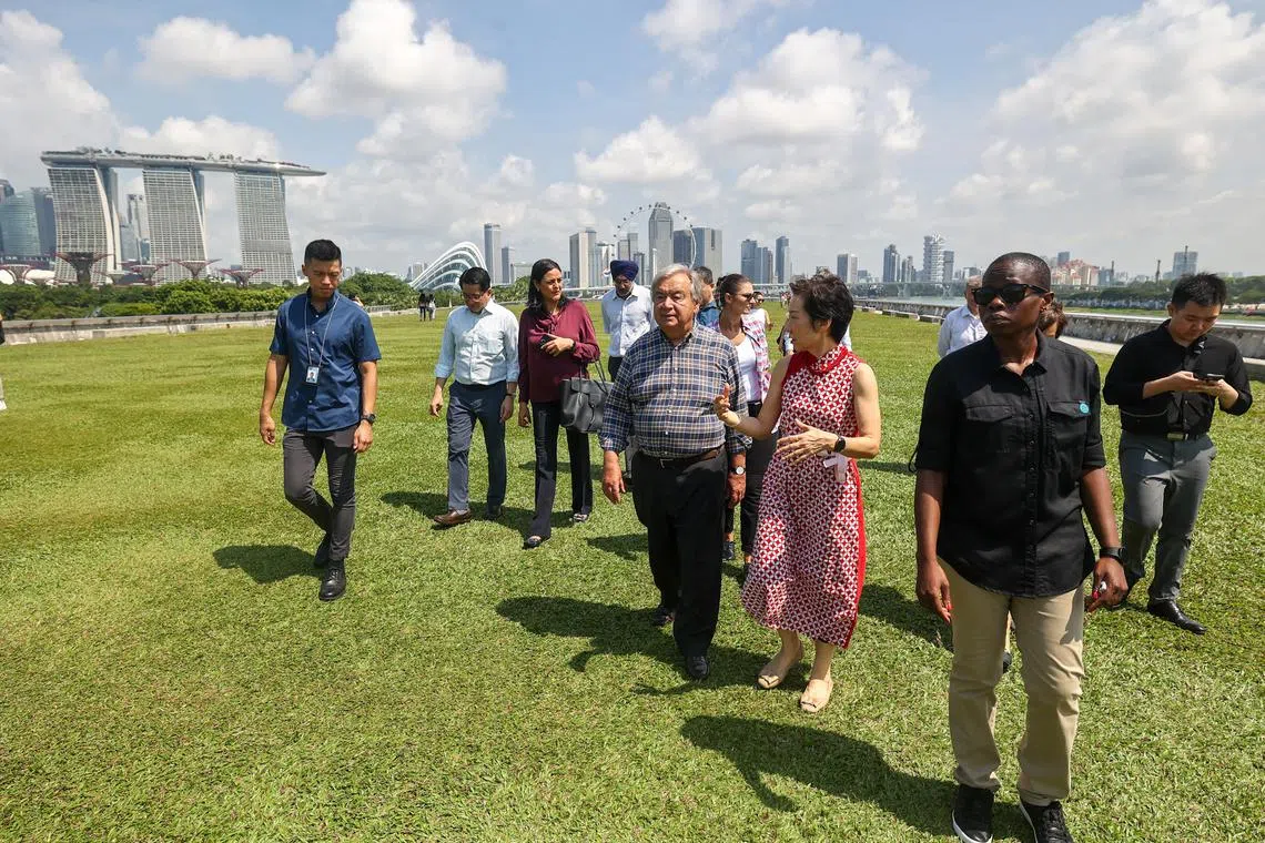 The day before, Mr Guterres was given a tour of Marina Barrage and was hosted to lunch by Minister for Sustainability and the Environment and Minister-in-charge of Trade Relations Grace Fu.