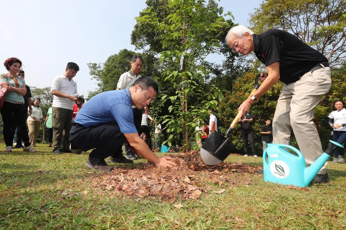 To commemorate Singapore’s greening journey, 60 native trees were planted in the Singapore Botanic Gardens on Saturday, including the Mempat tree, the same species which Mr Lee Kuan Yew used to kick-start the greening campaign.