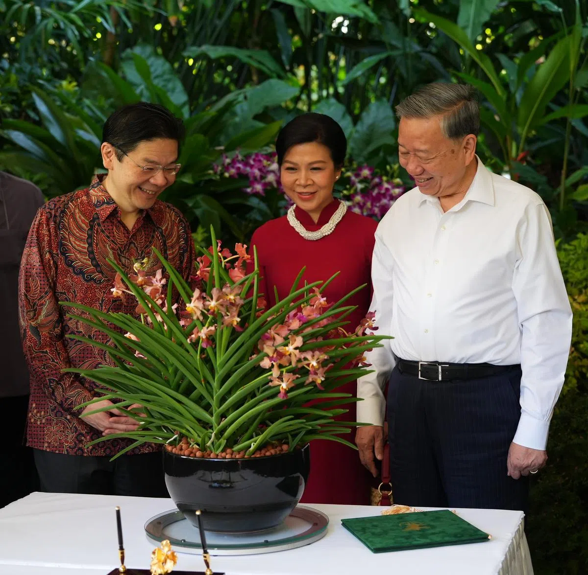 Prime Minister Lawrence Wong (left) with General Secretary of the Communist Party of Vietnam To Lam (right). This orchid is named in honour of His Excellency, To Lam.