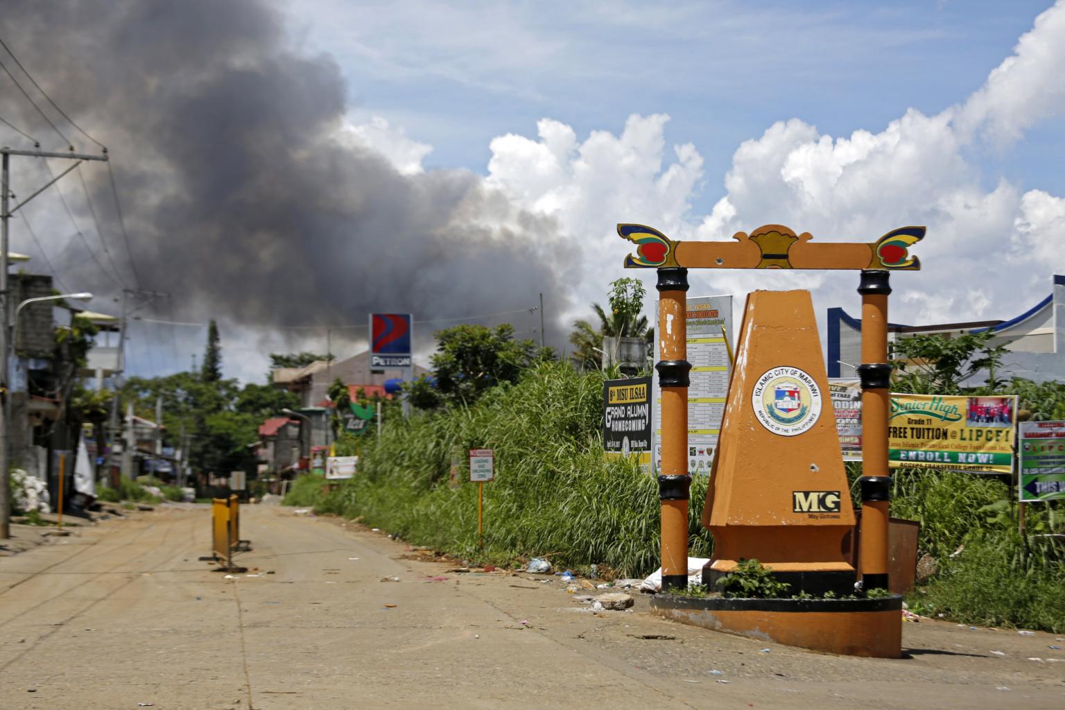 Smoke rises from burning houses following an air strike at Maute rebels stronghold as fighting between Islamist militants and government forces continues in Marawi city,
