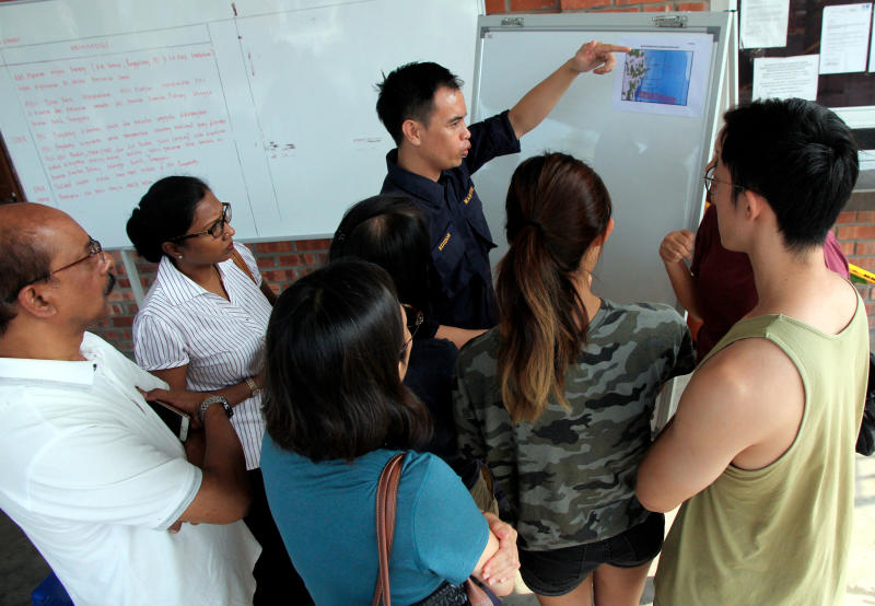 In a photo taken on Aug 15, 2019, Malaysian Maritime Deputy Lieutenant Eddieson Efendi Ussim gives a briefing to the family of Singaporean Tan Eng Soon, who had gone missing while kayaking in Endau waters near Mersing on Aug 8, 2019.