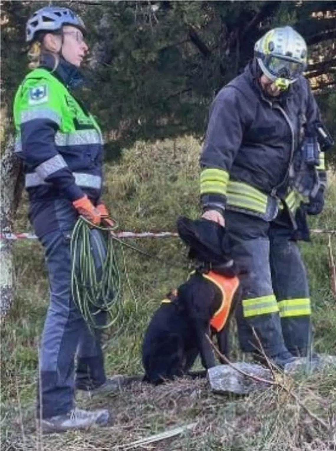 Bayla, from an Italian police canine rescue unit, helped in the search for Ms Chang Kai-en.