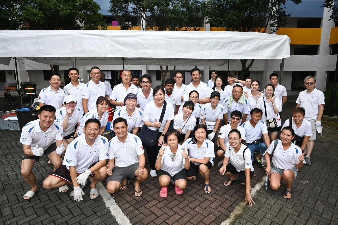 Mr Steven Goh (middle) working with a group of volunteers at a resident's home.