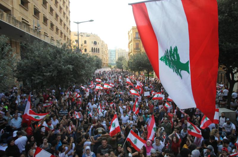 Lebanese demonstrators take part in a protest against dire economic conditions on Oct 21, 2019.