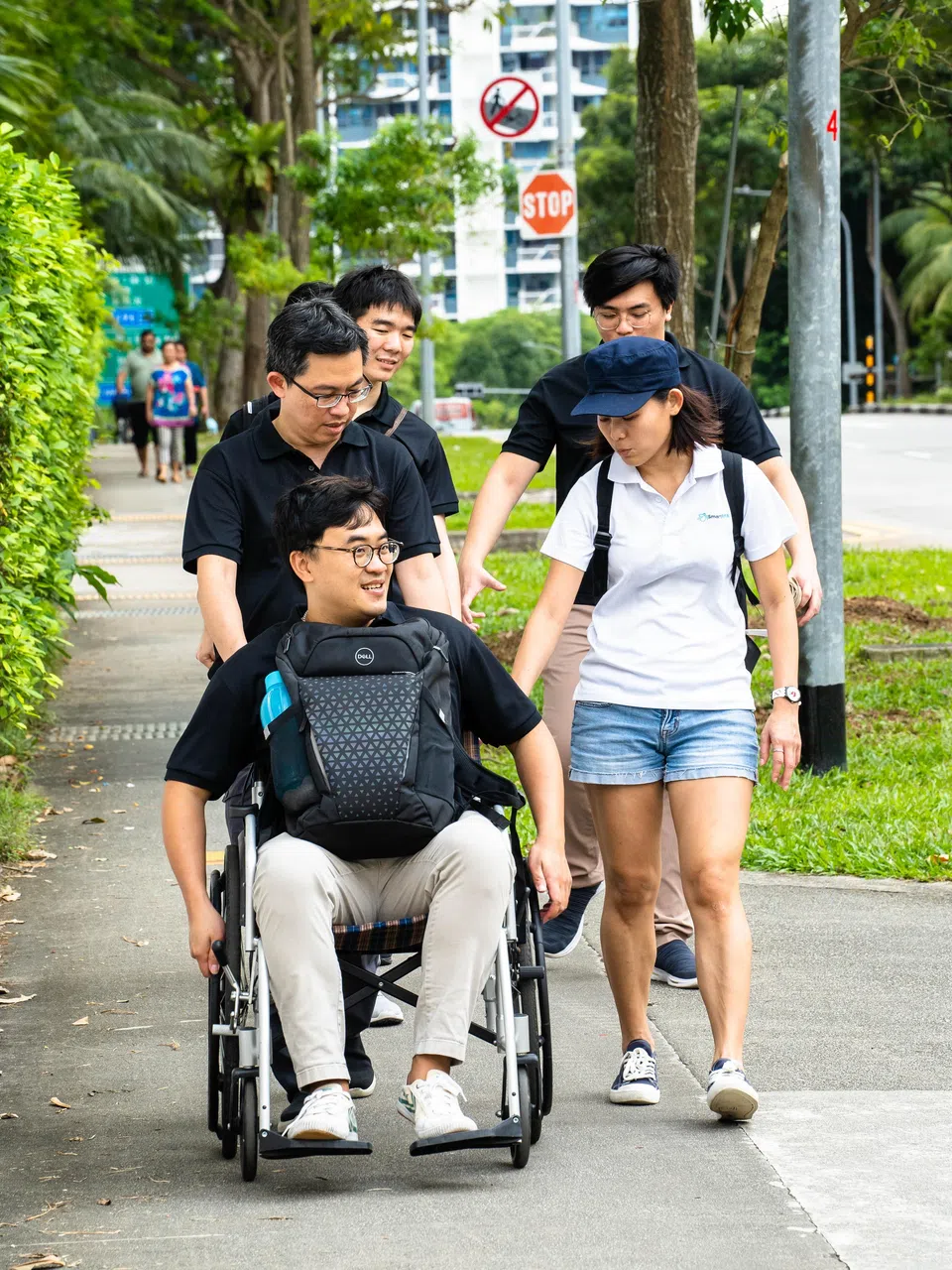 Volunteers attending a Wheel the Ground session organised by SmartBFA to collect data on barrier-free and accessible paths for wheelchair users around Singapore.