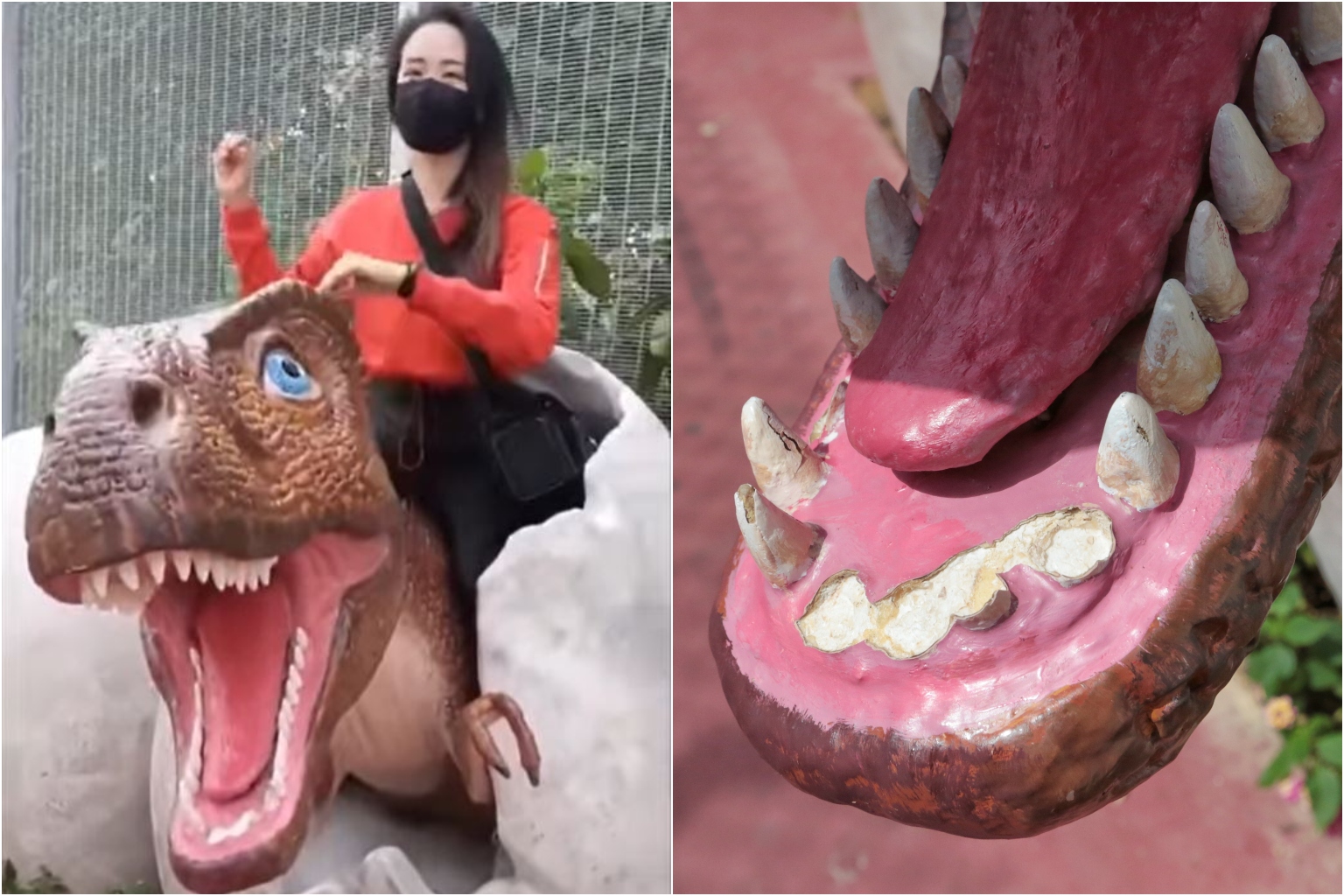 She added that they had also noticed the dinosaur with damaged teeth along their ride, as it was "very obvious".
