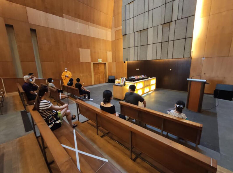 The funeral service for Mr Chung Ah Lay, who died from complications due to Covid-19, at Mandai Crematorium and Columbarium on March 31, 2020.