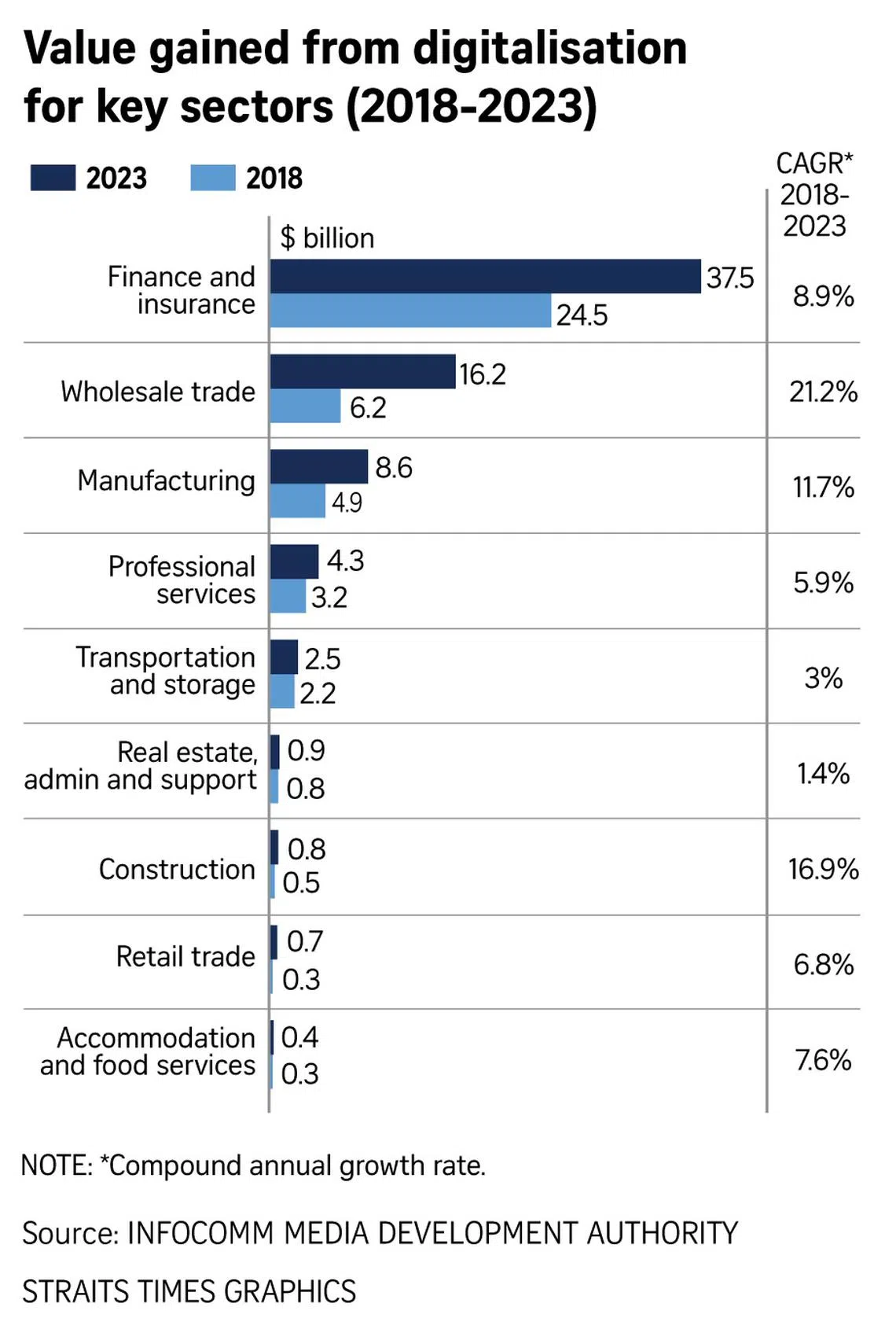 The digital economy exceeds the financial services and insurance sectors in size, and is comparable to the manufacturing sector, noted the Infocomm Media Development Authority (IMDA) in its annual review report on Oct 29.