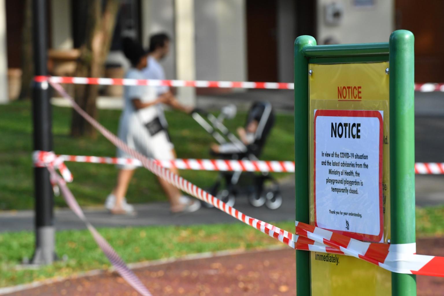 A sign at West Coast Park informing users that the playground has been cordoned off during the circuit breaker, on April 10, 2020.