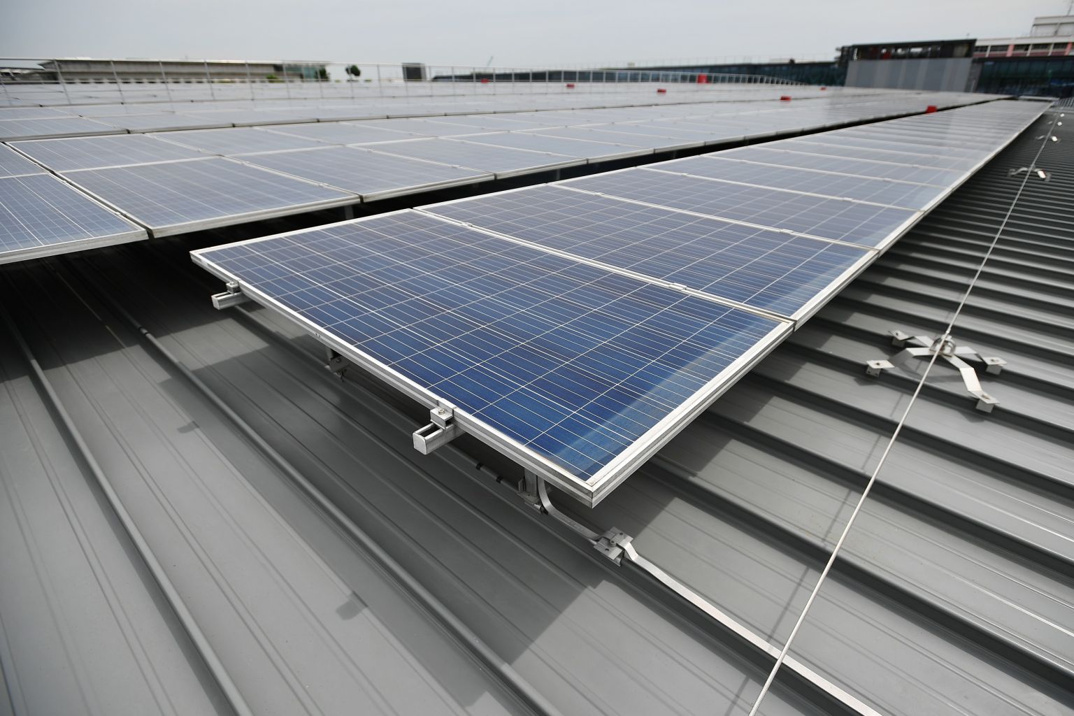The 830 solar photovoltaic panels above the stadium seating at Our Tampines Hub. The push to have solar panels on rooftops across Singapore is a major initiative.