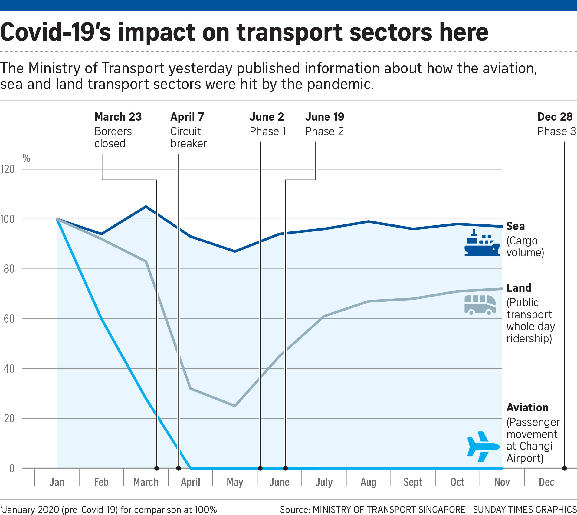 Correction note: An earlier version of this story said that passenger movement at Changi Airport in April was 0.004 per cent and in November was 0.019 per cent. MOT has since clarified and the figures have been updated.