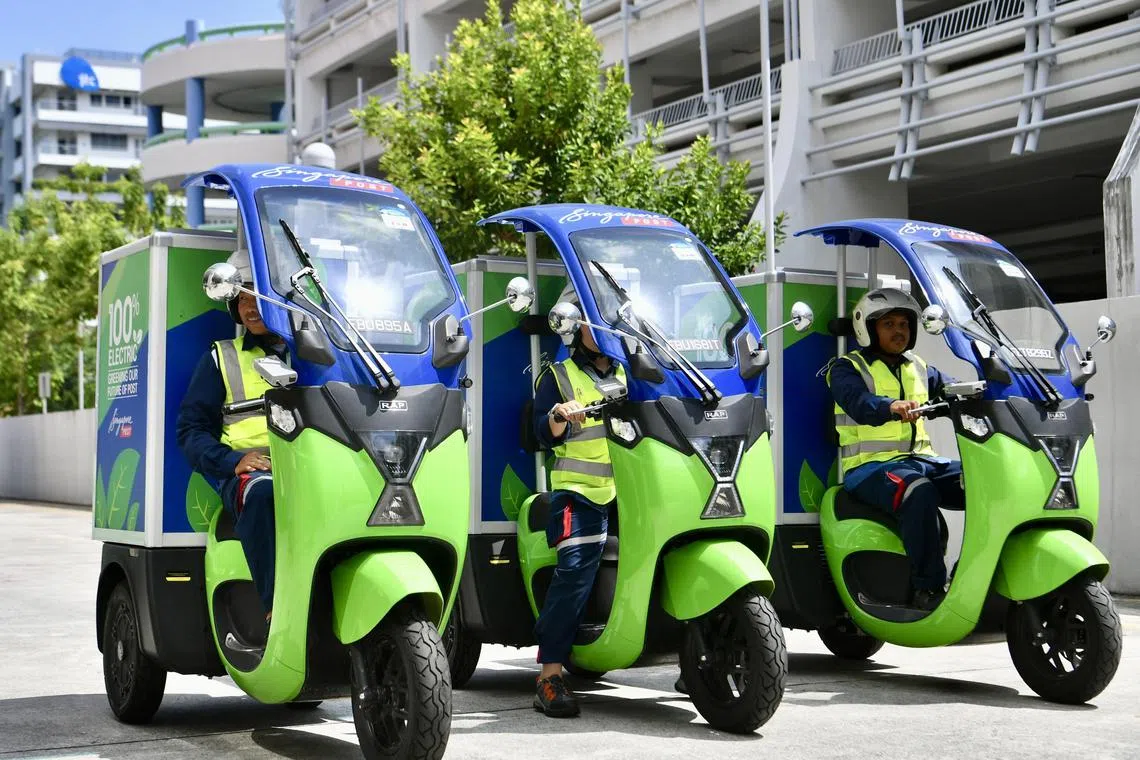 SingPost will have 14 three-wheeler bikes, as well as 11 vans, for the programme. The vehicles are equipped with AEDs, first aid kits and fire extinguishers.