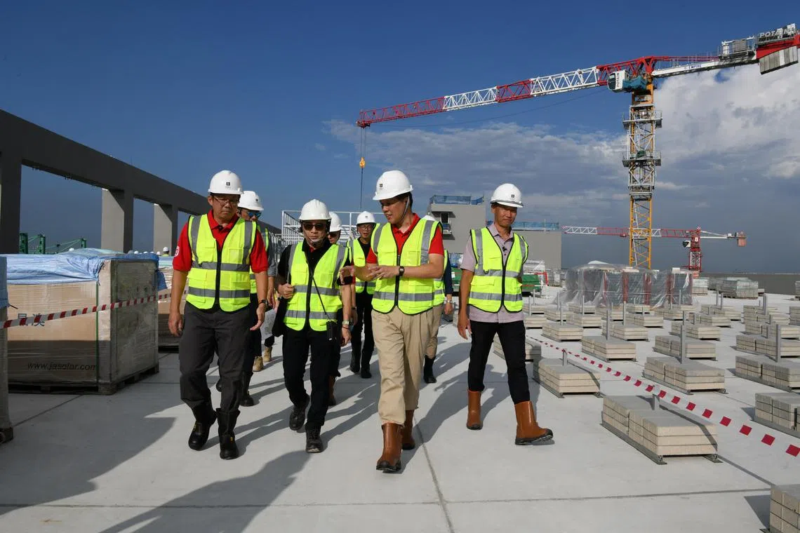 Education Minister Chan Chun Sing observing progress of the new SIT campus at Punggol Digital District on May 22, 2023.