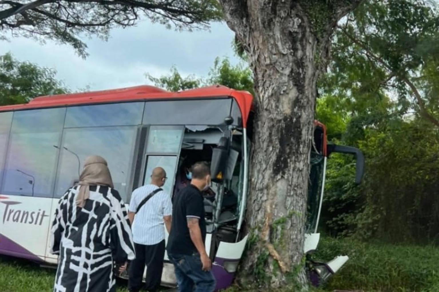The bus was travelling on the slip road from the Tampines Expressway towards the Kallang-Paya Lebar Expressway (KPE) when it crashed into the tree, SCDF said.