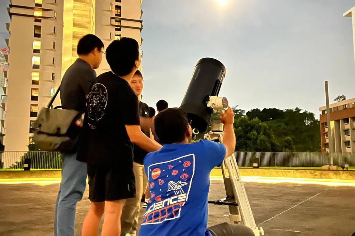 The National University of Singapore Astronomical Society had organised a Mid-Autumn event at U-Town to view the supermoon, and 25 students deployed two telescopes for sharp and up-close views, said the society’s vice-president Chen Wei Zhong.