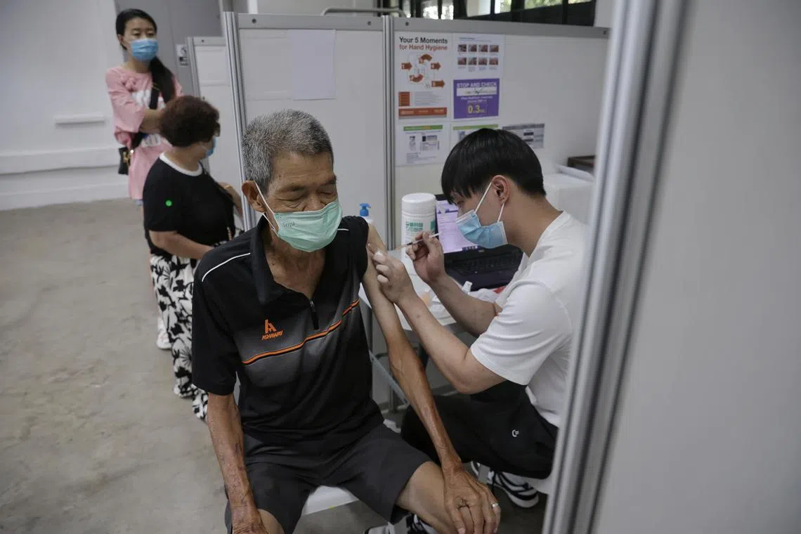 Among the younger adults getting their jabs on Saturday were foreign employees who were required by their companies in Singapore to take their first booster dose before starting work.
