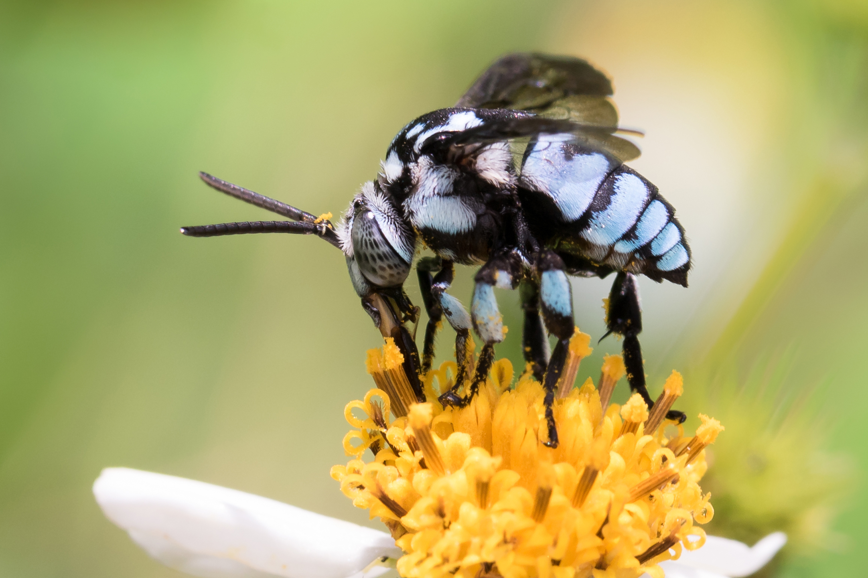 The cerulean carpenter bee is one of them, and was also one of the first bee species discovered here, in 1854.