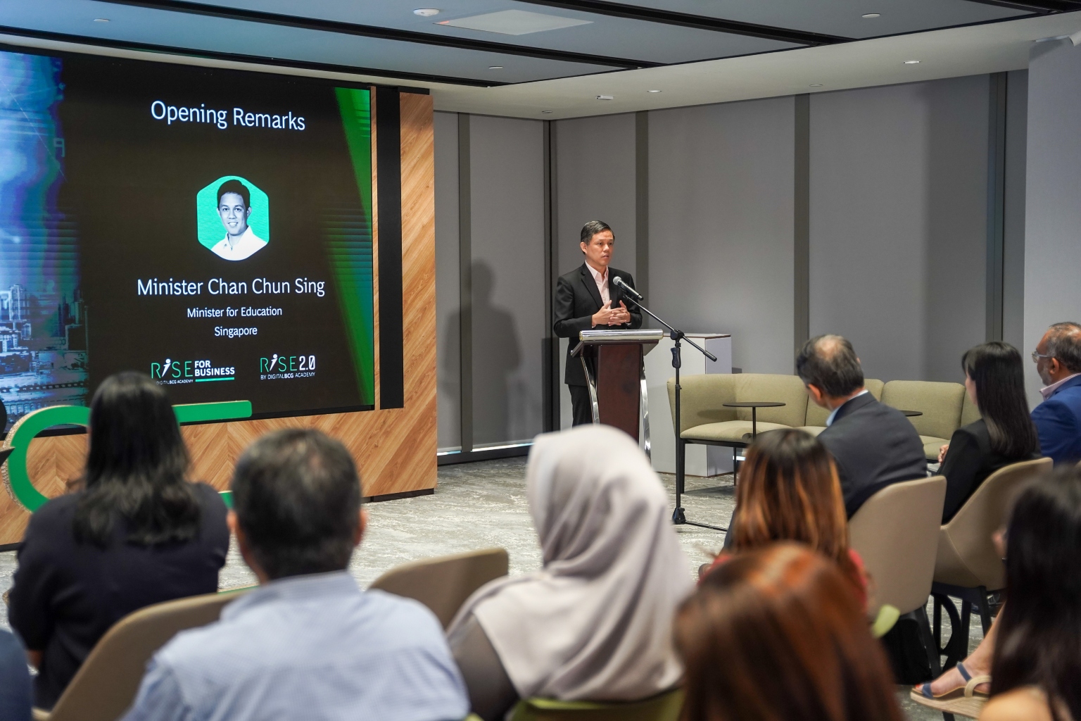 Education Minister Chan Chun Sing launching the Rise for Business and Rise 2.0 programmes on Tuesday.