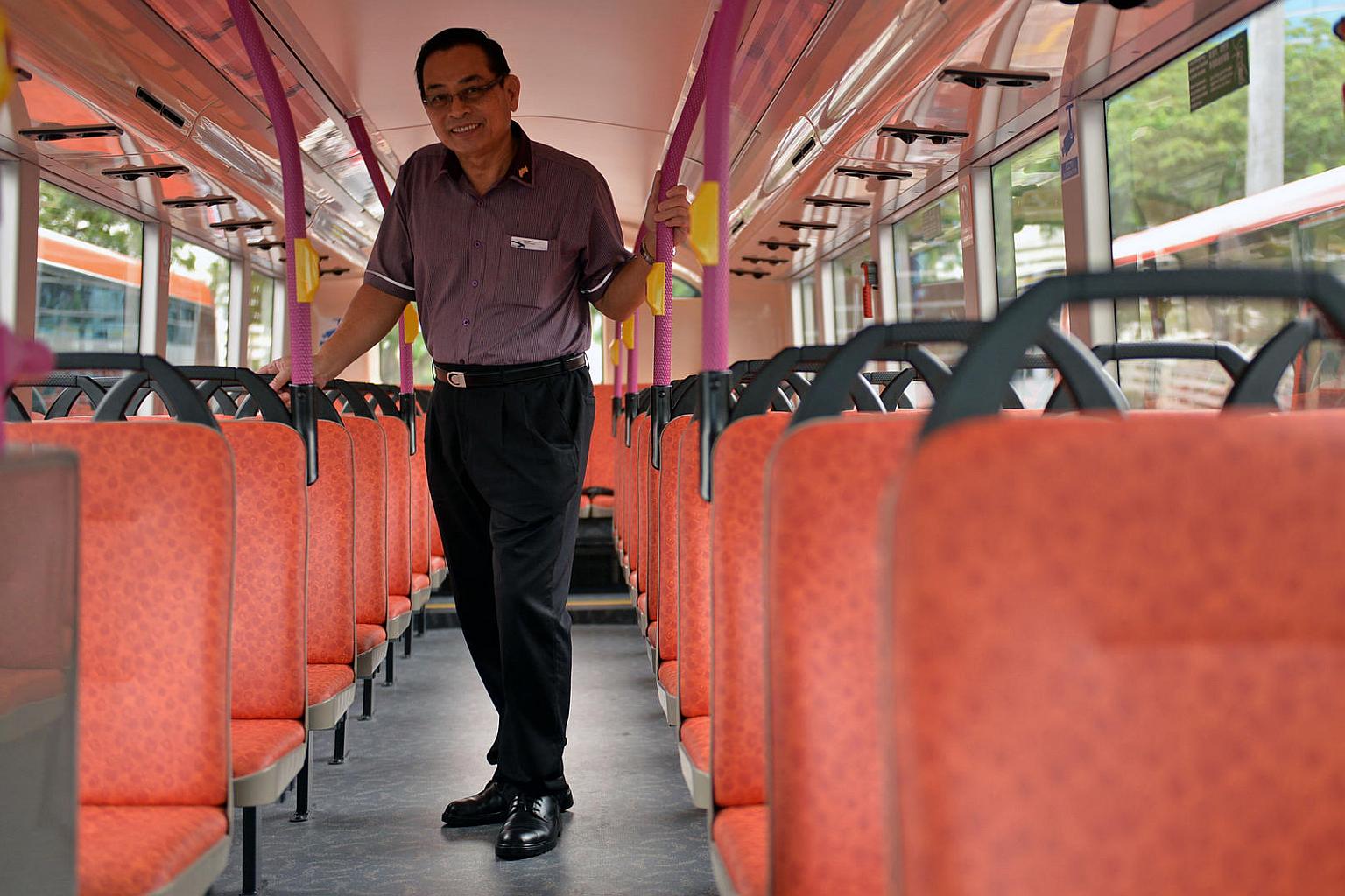 Bus driver Mr Lim Yew Huat, 65, has been with SBS for 41 years. SMRT bus drivers can now keep working till 69.