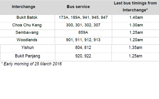They include buses at Bukit Batok, Choa Chu Kang, Sembawang, Woodlands, Yishun and Bukit Panjang interchanges.